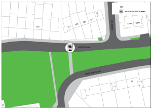 Following lobbying from residents and councillors over several years, Havering Council are proposing to install a zebra crossing outside 321 Front Lane, Cranham. This will provide a safe crossing particularly for families in the Waycross Road area to walk to and from Engayne Primary School, as well as the nearby bus stop.